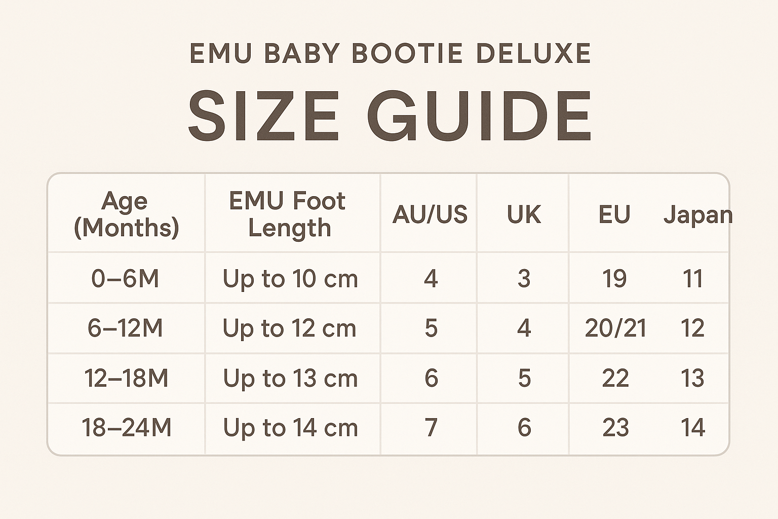 Age (Months) EMU Foot Length AU/US UK EU Japan