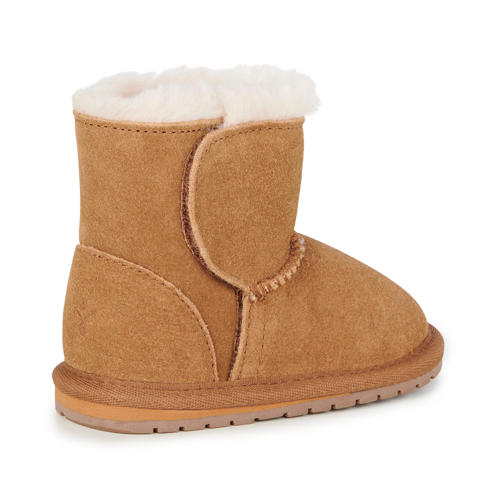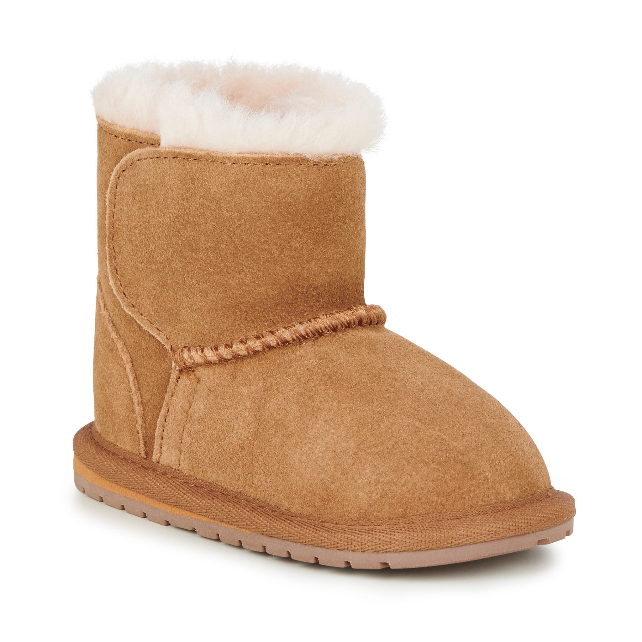 For those taking their first steps, the EMU Australia Toddle is a soft suede toddler boot lined with cozy Australian Merino wool to keep feet perfectly warm and snug. Built on a flexible moulded rubber sole for grip and traction, it features a full velcro closure for a snug and easy fit. Warm, soft and comfortable on a flexible rubber sole, learning to walk has never felt so good.