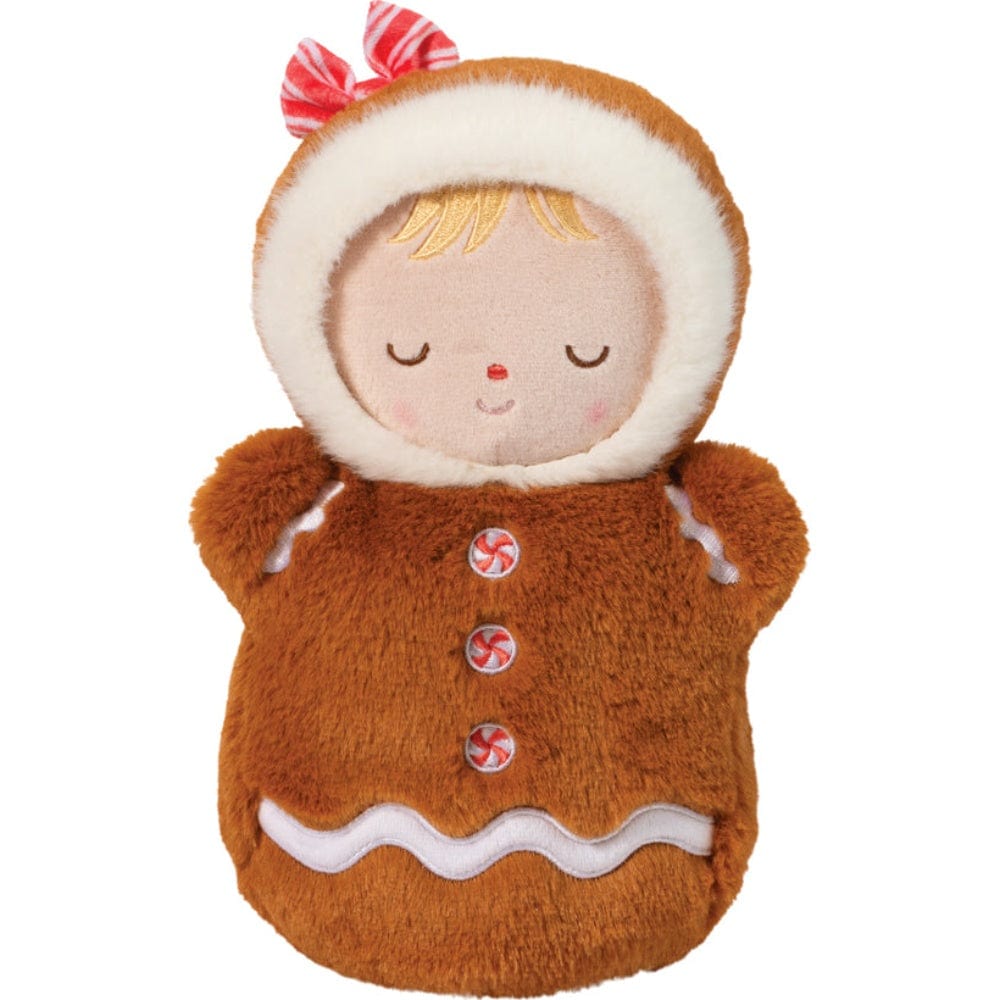 Bring holiday warmth and charm with the Gingerbread Baby Doll Plush! Wrapped in a soft, fleece gingerbread cookie swaddle, this cuddly doll features delicate embroidered details and a tiny bow on her head. Made from ultra-huggable materials, she’s perfect for little hands to cuddle and carry, making every moment feel festive and heartwarming.
