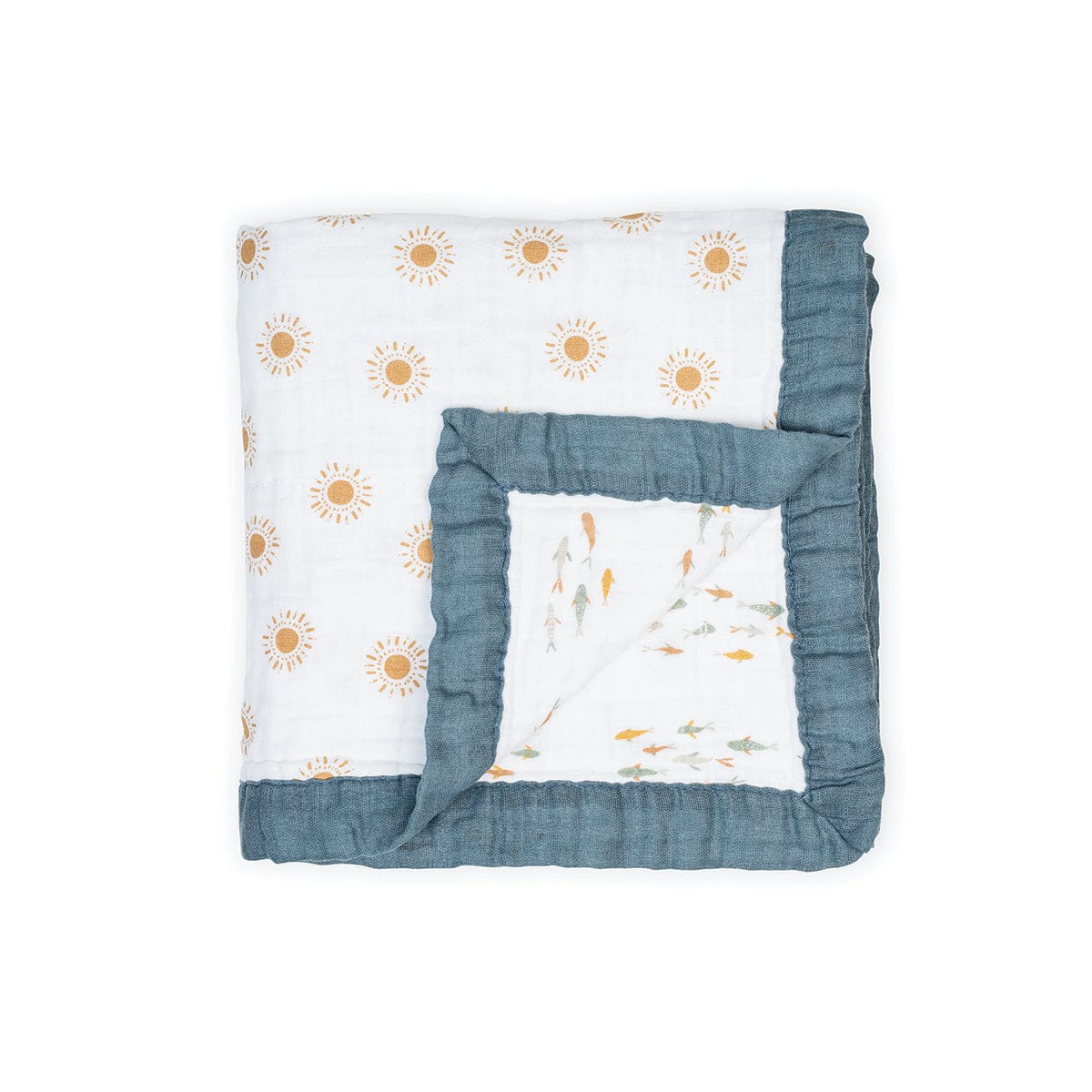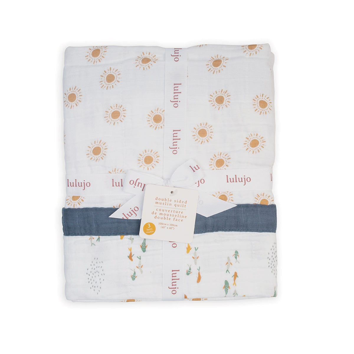 Lulujo Reversible Muslin Quilt - Fish & Sun