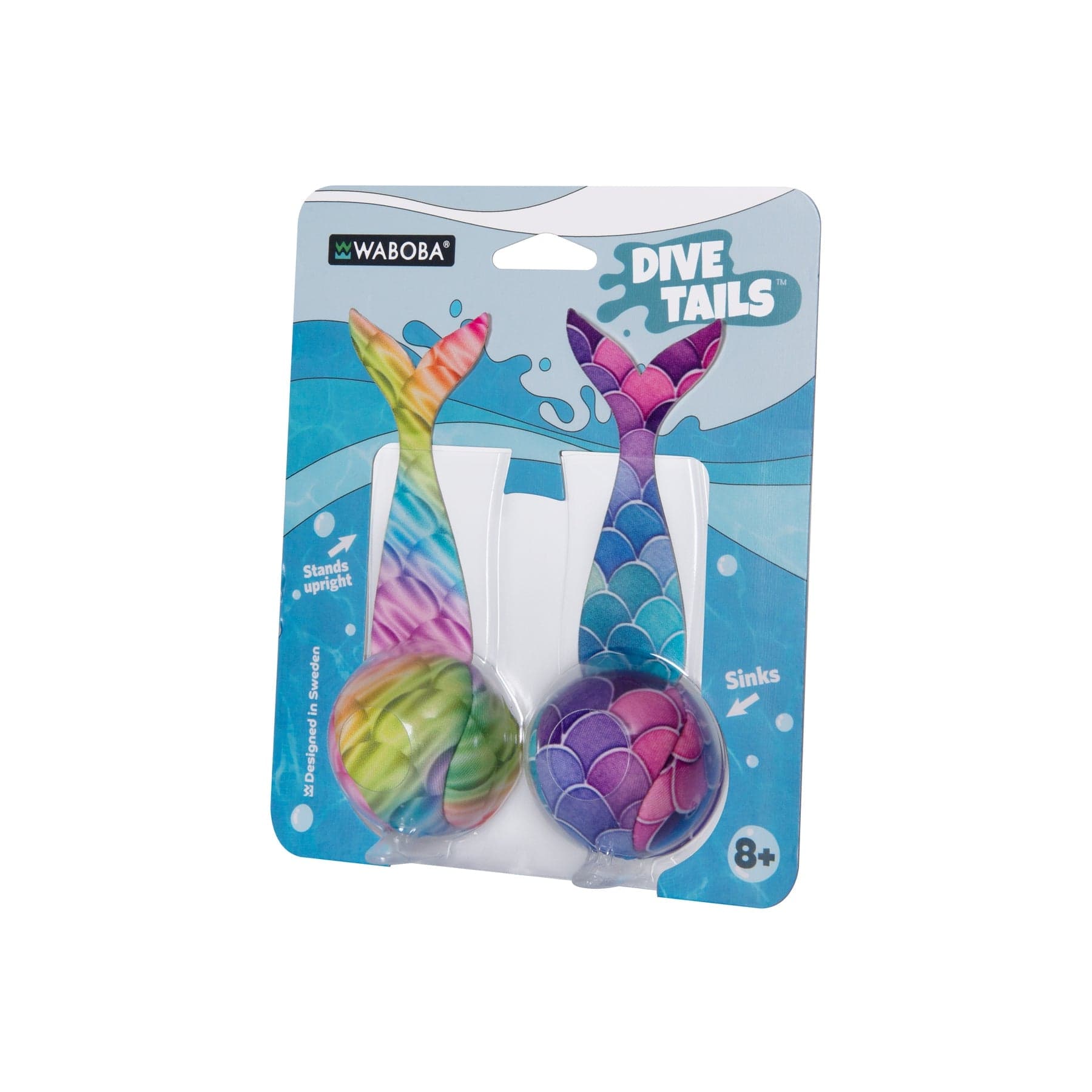 Turn every swim into an underwater adventure with Waboba Dive Tails! Perfect for imaginative play, kids can pretend to be mermaids as they dive down to retrieve these playful sinkers. Each Dive Tail stands upright on the pool floor, making them easy to spot and grab. Make a splash this summer with Waboba Dive Tails β where pool time becomes playtime. Available in a fun two-pack with either mermaid or sea creature designs!