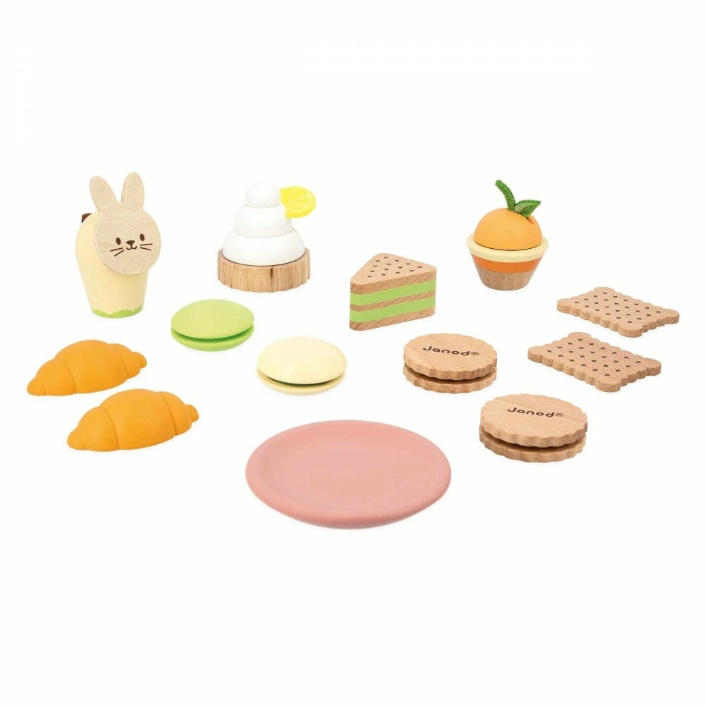 A delightful pretend play set for little foodies! This wooden pastry stand lets children display and serve cakes, cookies, and other sweet treats—just like a real bakery. Perfect for role play, sharing, and imaginative fun.