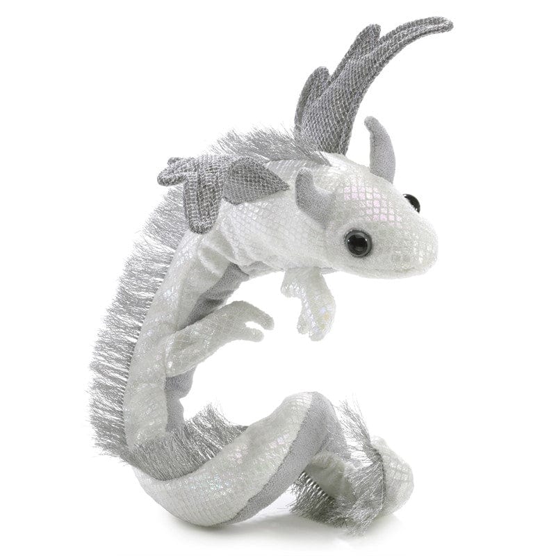 The Folkmanis Pearl Dragon Wristlet is a dazzling combination of wearable art and puppet jewelry. With its pearlescent finish, this exquisite finger puppet is ideal for cosplay, imaginative play, and storytelling. Perfect for fantasy lovers and puppet enthusiasts, the Pearl Dragon Wristlet brings enchantment to your fingertips!