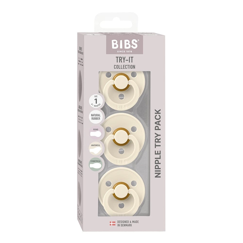 Every baby is unique—especially when it comes to pacifier preferences. Facial features, sucking habits, and oral development all play a role in what feels most comfortable for your little one. That’s why the BIBS Try-It Collection is designed to help parents find the ideal fit by offering a variety of nipple shapes in one convenient package. Made from soft, flexible natural rubber latex, this collection is perfect for testing what suits your baby best.