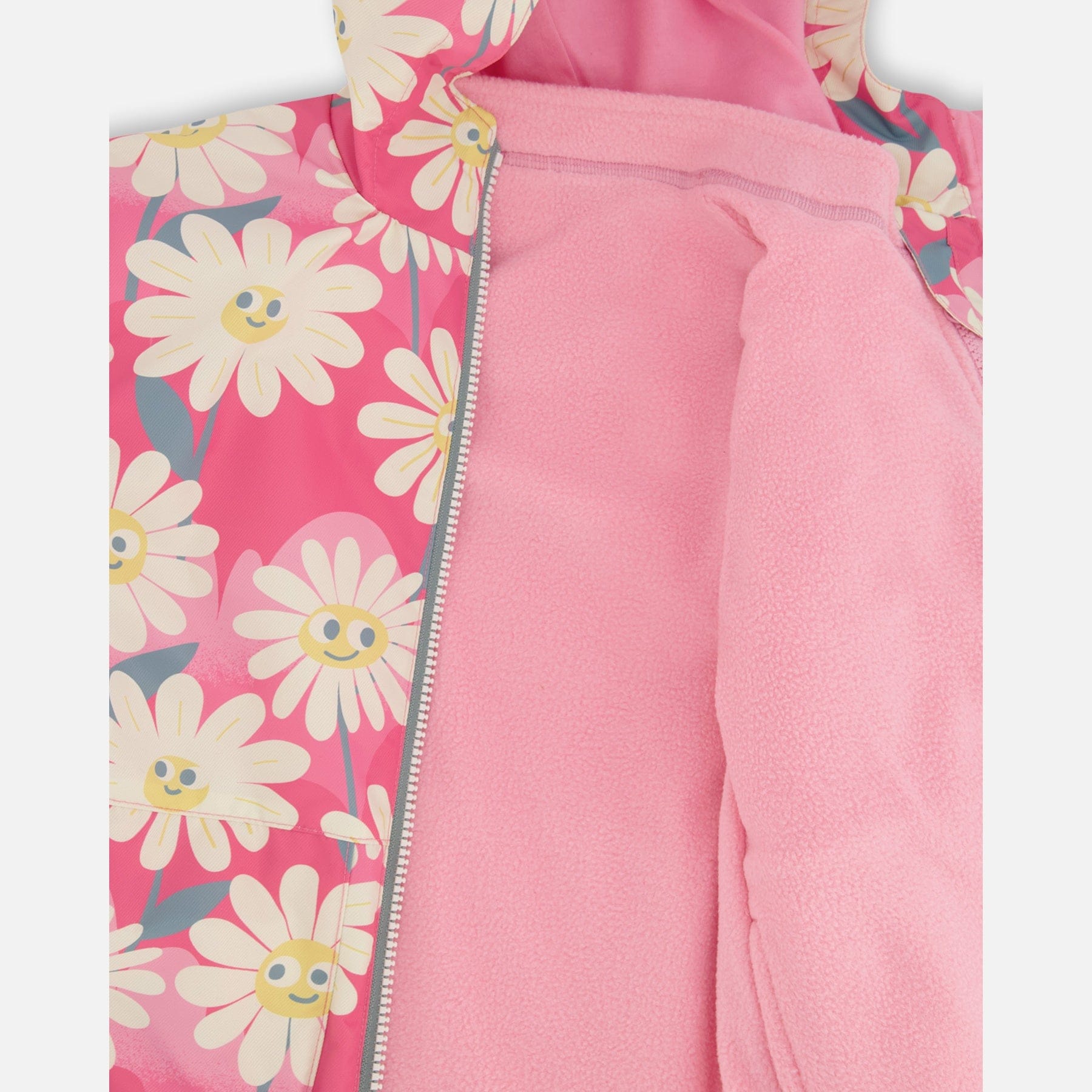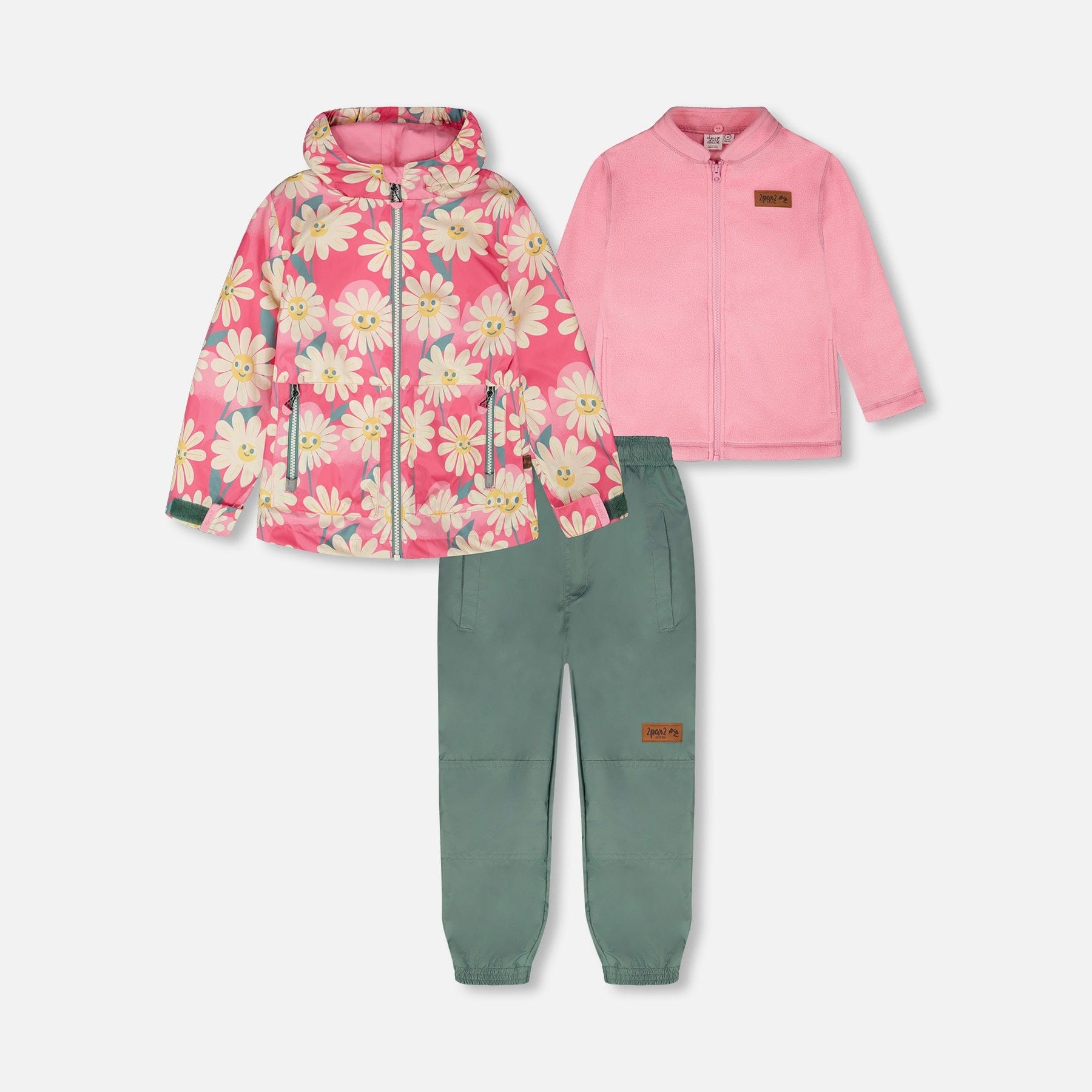 This 3-in-1 mid-season outerwear set keeps girls cozy, dry, and comfortable in changing weather. It includes a jacket, a removable polar fleece jacket, and coordinating solid pants. Made from recycled materials and treated with an eco-friendly water- and dirt-repellent coating, the set features a fleece-lined hood, taped seams, reinforced knees, and reflective details for safety and warmth.