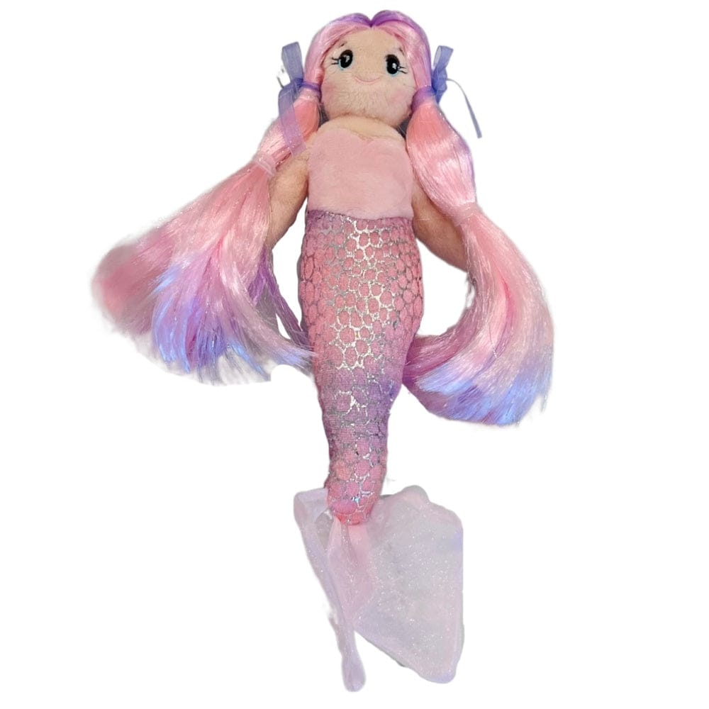Bring a splash of magic with the Douglas Pink Mermaid! This plush doll features a shimmering pink tail, soft silky hair, and a sweet embroidered face. Perfect for imaginative underwater adventures or cozy cuddle time, she’s a delightful addition to any mermaid collection.