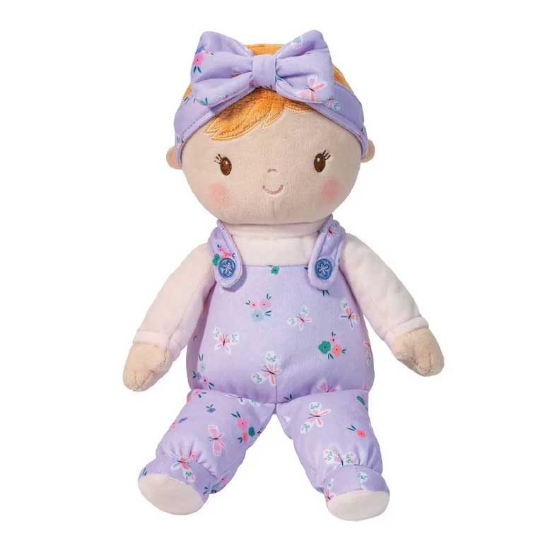 Willa, la poupée fleur papillon, porte une salopette couleur lavande ornée de grappes de fleurs vibrantes et de délicats papillons flottants. Ses cheveux blonds sont maintenus par un bandeau assorti pendant qu'elle s'occupe de son jardin. Conçue sur mesure pour les plus jeunes, Willa possède un corps en peluche et câlin rempli du polyester le plus doux, et son visage aux joues roses est orné d'accents brodés sans danger pour les bébés.