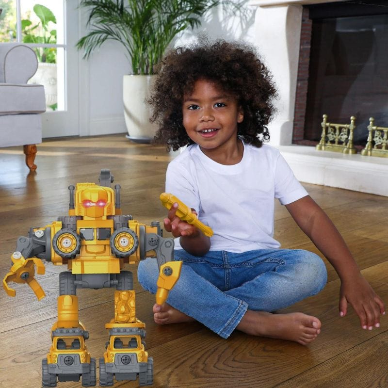 5-in-1 Transformable Fun: Five construction vehicles combine to create a giant, powerful robot.