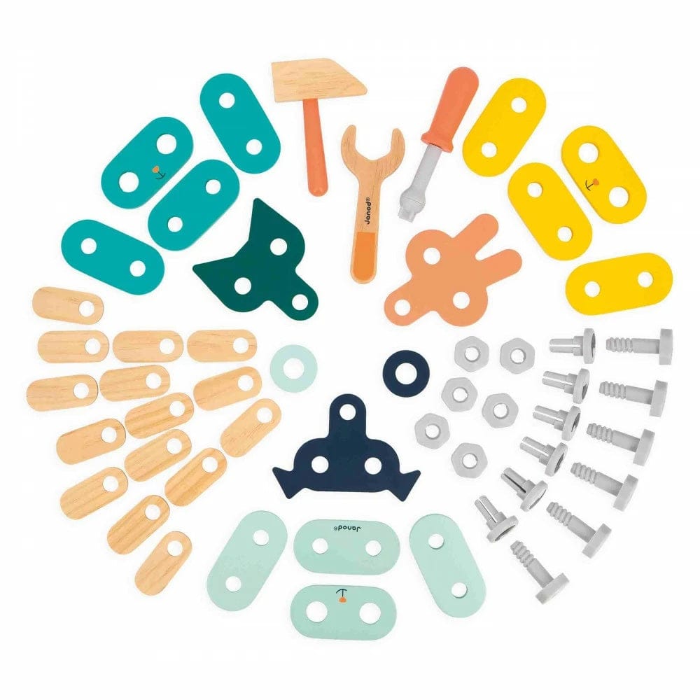 Perfect for little DIY fans, this wooden construction set lets children aged 3 and up build their own cat, dog, and rabbit. With 53 pieces and real-looking tools, kids can assemble each animal step by step while developing fine motor skills, logic, and imagination. This hands-on activity encourages independence and creative play.