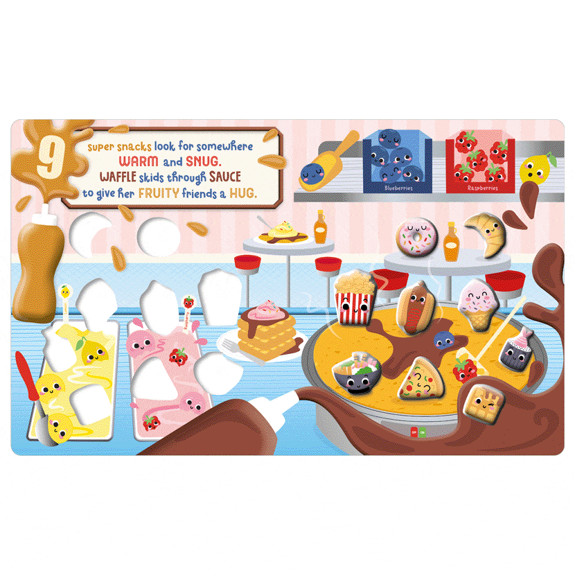 Interactive Touch-and-Feel Elements – Each page features snack-shaped silicone textures for a multisensory reading experience.