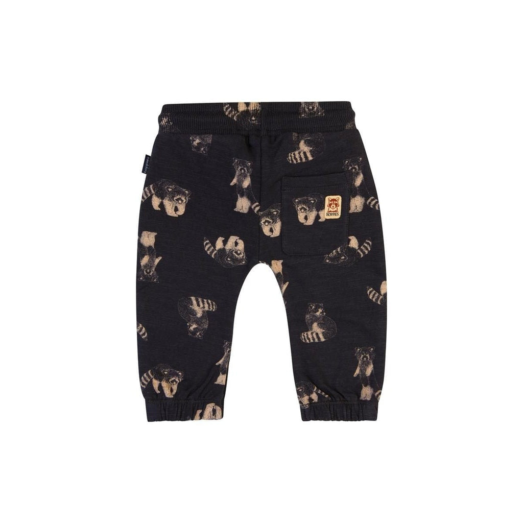 Le pantalon Guntin de Noppies en Phantom offre le mélange parfait de confort et de style pour votre enfant. Avec une taille élastiquée et un cordon de serrage réglable, ce pantalon de jogging est non seulement facile à porter, mais contribue également à un meilleur environnement car il est certifié GOTS. La couleur sombre le rend polyvalent et le joli imprimé raton laveur ajoute une touche amusante. Vous pouvez également l'associer au pull assorti de notre collection pour un look complet !