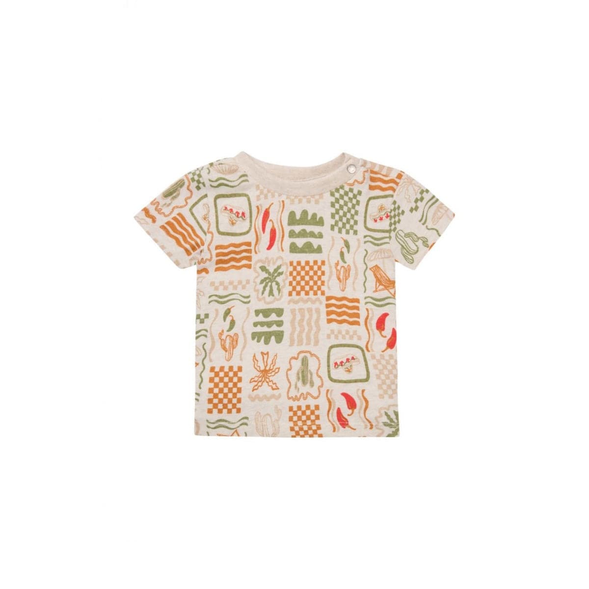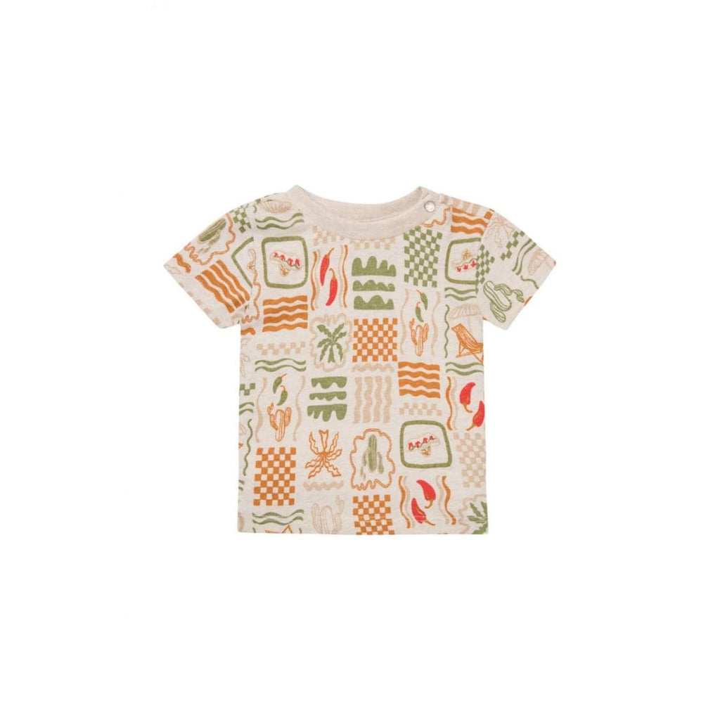 Elevate your son's warm-weather wardrobe with the Noppies Okazaki Short Sleeve Tee. This vibrant tropical pattern creates a standout look perfect for spring and summer. Thoughtfully designed with a round neckline and convenient press studs for effortless dressing, this GOTS-certified shirt combines style with practicality. The eye-catching print ensures your little one becomes the center of attention while staying comfortable during sunny days. Choose this conscious, expertly crafted piece to help your baby beat the heat with sophisticated flair.
