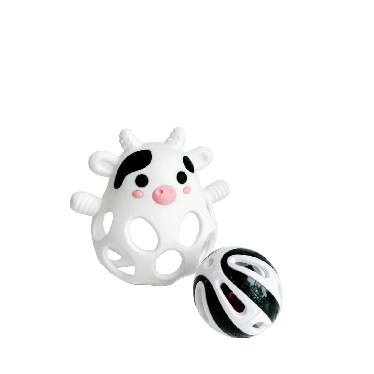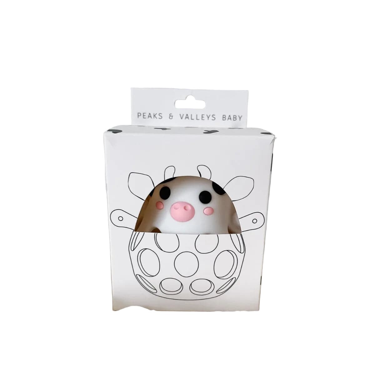 Millie the Teething Cow from Peaks and Valleys Baby is a versatile teether and rattle designed to soothe sore gums while supporting sensory and motor skill development. Made from 100% food-grade silicone, Millie features a lightweight hollow body with easy-to-grip holes and a gentle rattling sound, making her the perfect companion for little hands. Safe, soft, and engaging, she provides comfort during teething and interactive play.