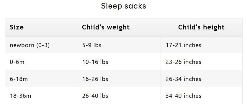 - 1.0 Tog bamboo sleep sacks ideal for temperatures between 64 and 72°F (18-22°C)