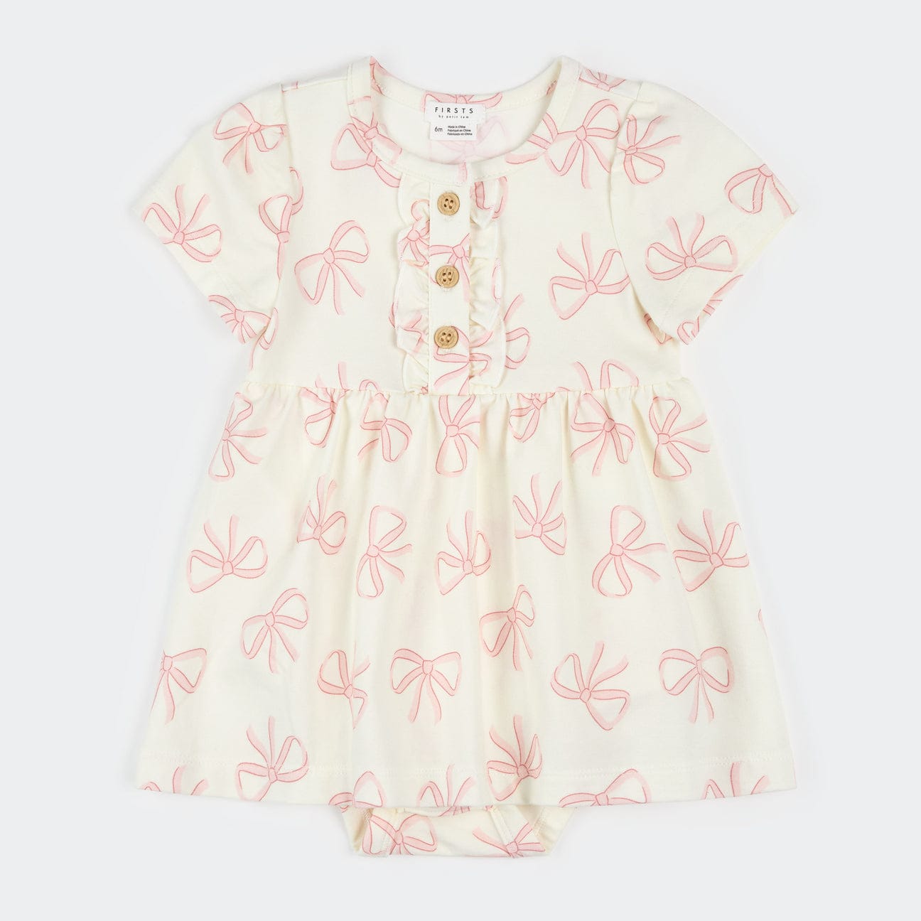 This delightfully soft bodysuit dress is made from a breathable combination of organically grown cotton and modal, with a little elastic for flexibility. With a flowy skirt that’s perfect for twirling, and frilly detailing along the button placket, the dress is designed for comfort and cuteness. Layer with tights and a cardigan for chilly days or let her roam free for those picture-perfect summer days.