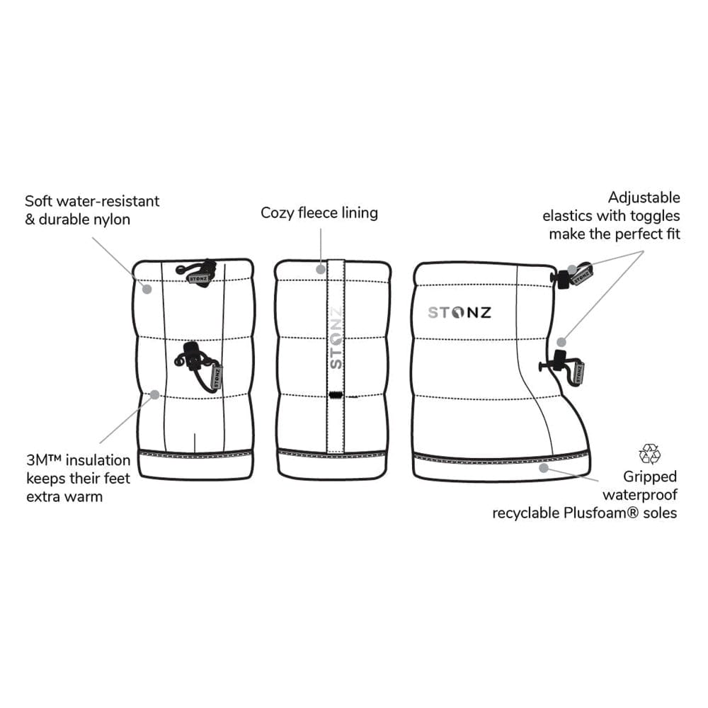 Les bottines Stonz Puffer pour tout-petits gardent leurs pieds au sec et au chaud même en plein hiver. Ces bottines Puffer utilisent une isolation 3M pour les garder bien au chaud à des températures aussi basses que -20 °C. Faciles à enfiler et à enlever pour toute séance de jeu impromptue dans la cour, ces chaussures antidérapantes à semelle en caoutchouc sont parfaites pour les tout-petits sauteurs prêts à conquérir le monde d'assaut.
