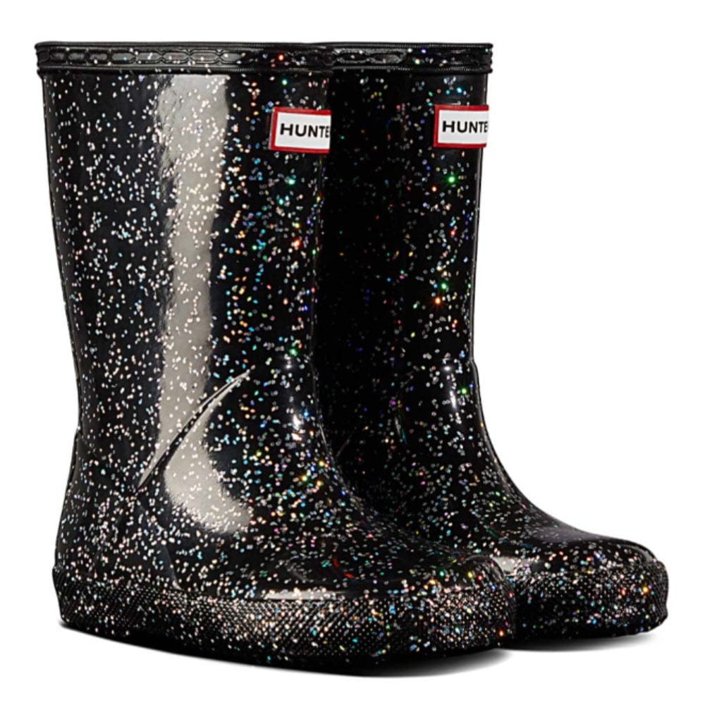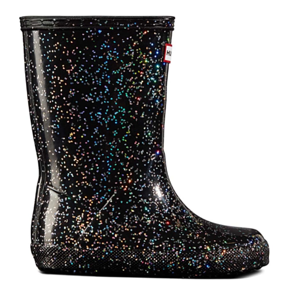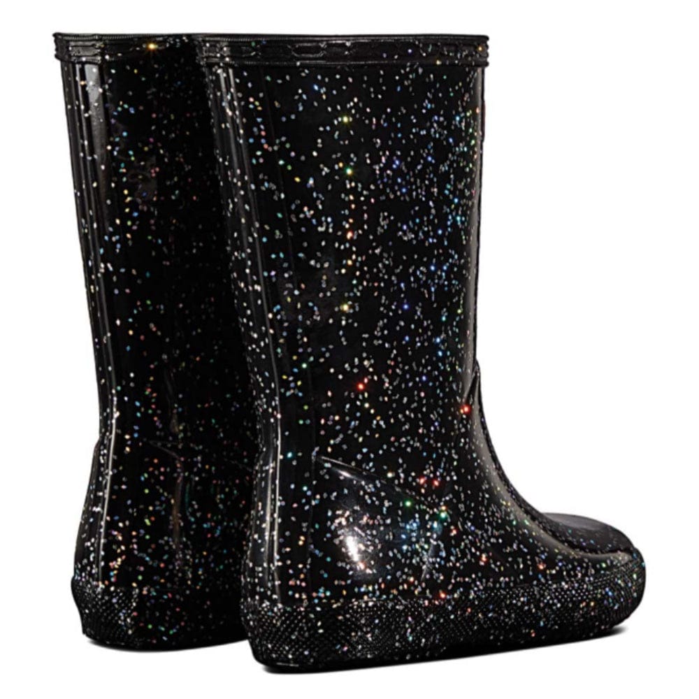 - Rain boots in glittery black