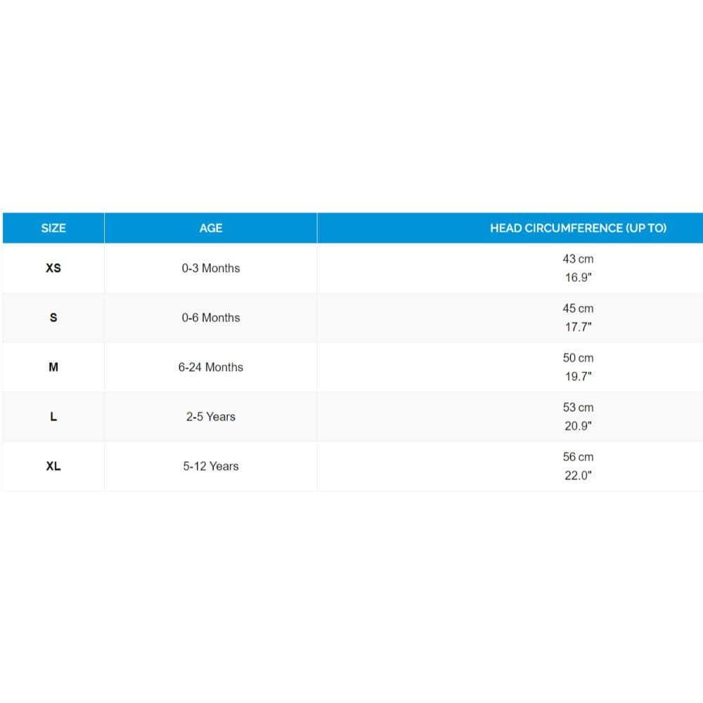S:   0 – 6 months, head up to 45cm (17.7″) with 6.5 cm wide brim