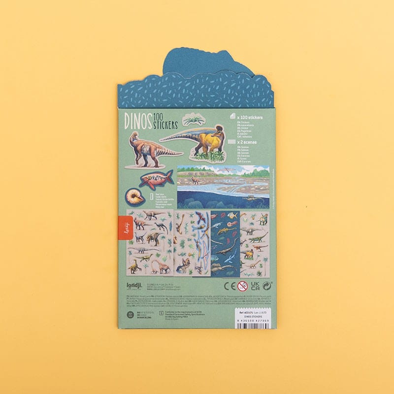 This game contains 100 dino stickers that are reusable and can be attached multiple times. Use these stickers to create your own dinosaur world as many times as you desire. These artistic stickers are portable and perfect for any adventure.