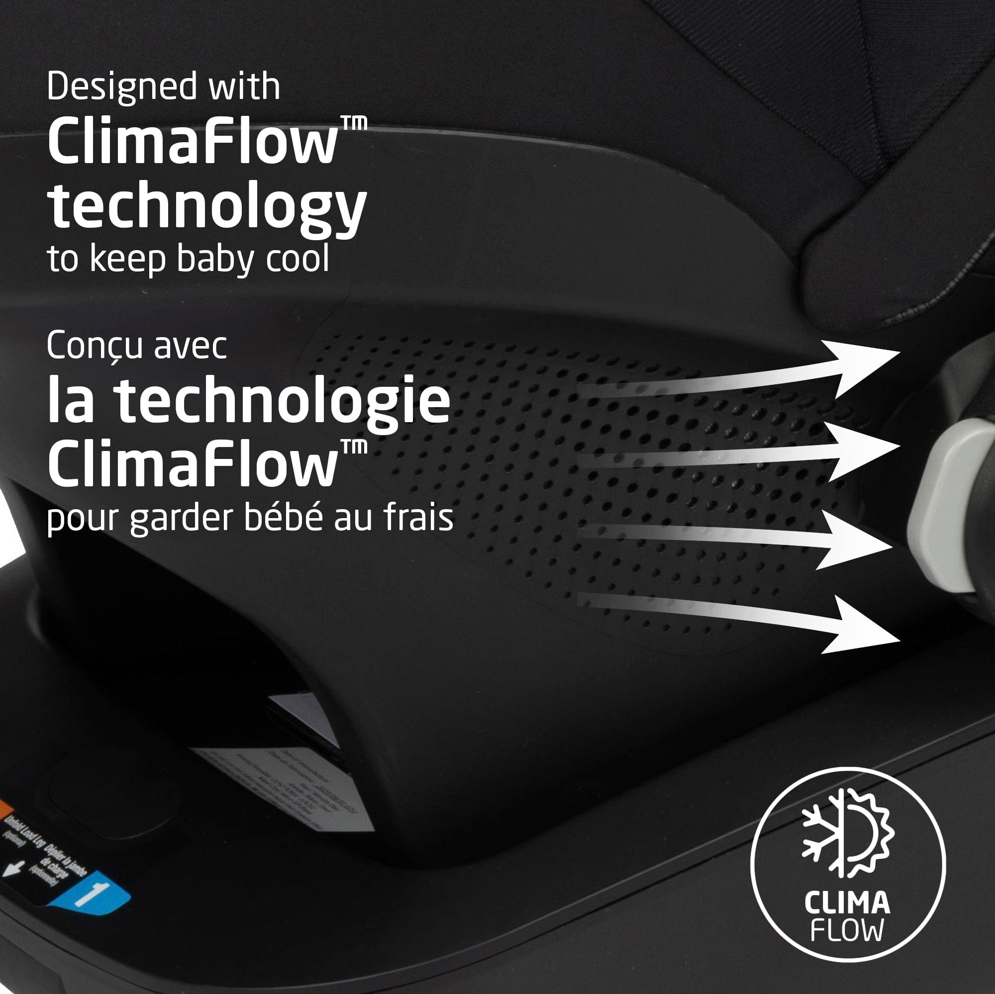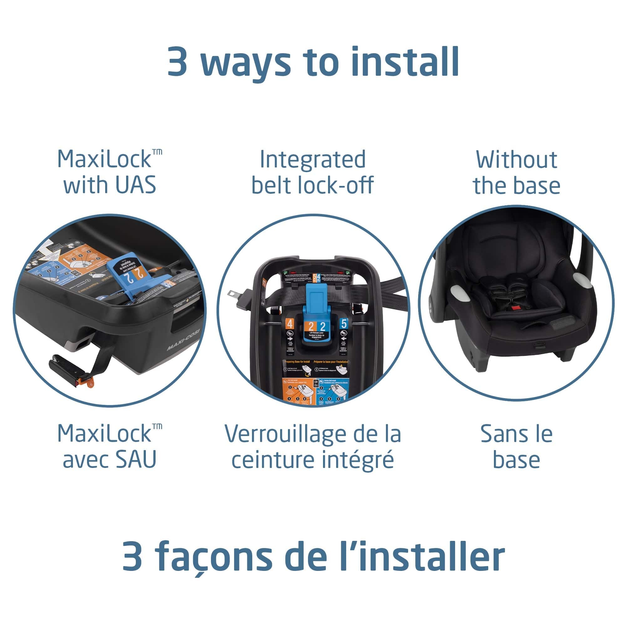• MaxiLock™ Base System – Features a self-tightening UAS system, 3-position adjustable recline, and visual red-to-green indicators for correct installation.