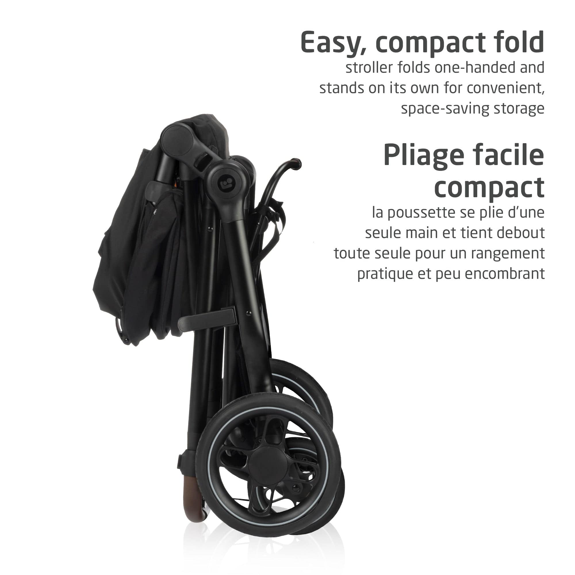 Transitions easily between five modes of use: carriage, toddler seat (parent- or world-facing), and travel system with included infant car seat.