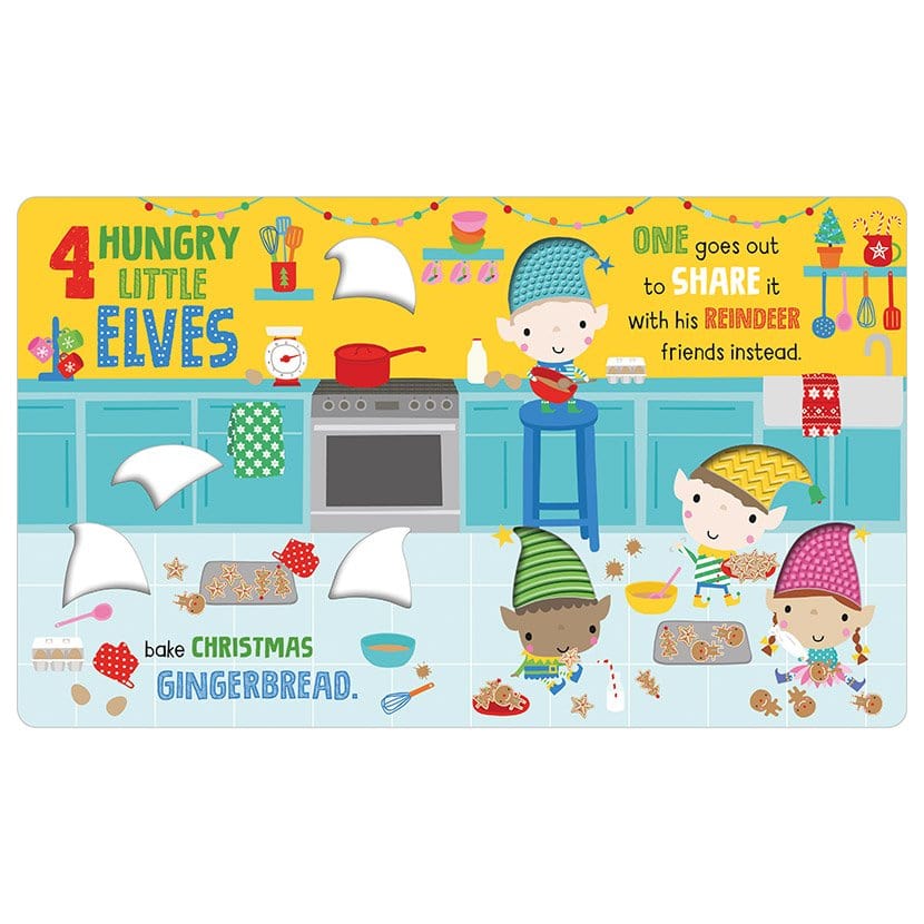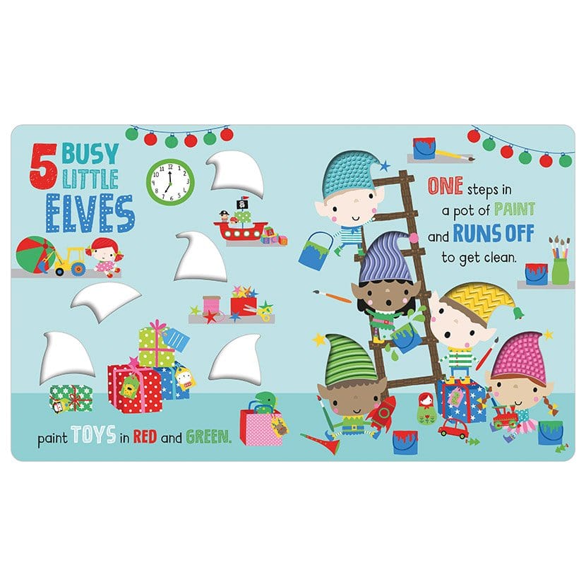 In this festive board book, follow along as the charming rhyme counts down from five with the busy little elves. With each turn of the page, the silicone elves magically disappear, offering an engaging and tactile experience for young readers. Share this delightful book over the holidays and watch as children are captivated by the counting fun.