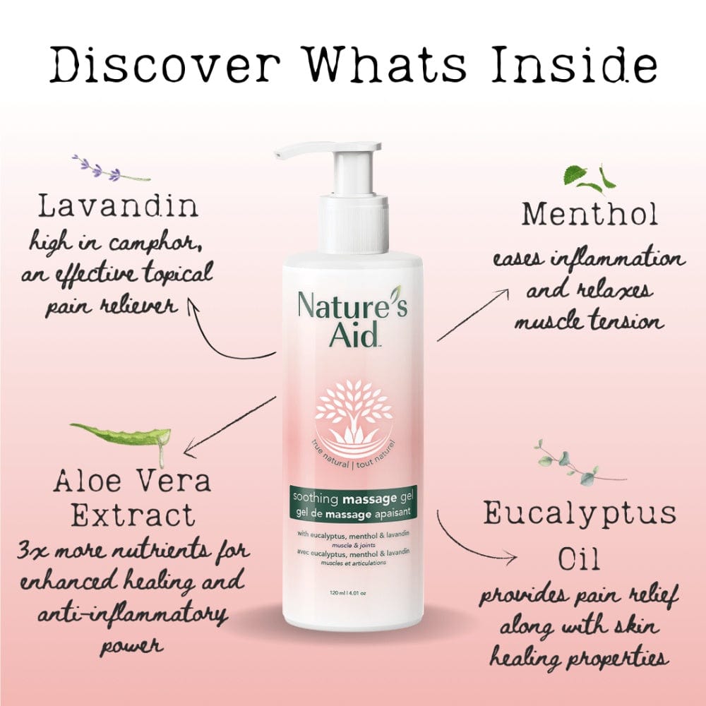 Nature’s Aid Refreshing Massage Gel is a lightweight, naturally formulated gel designed to provide a cooling and invigorating sensation. Blended with botanical ingredients such as menthol, eucalyptus, and lavandin, it absorbs quickly and leaves skin feeling refreshed. Ideal for use as part of a daily self-care routine, after physical activity, or anytime you want a gentle, soothing touch for your skin.