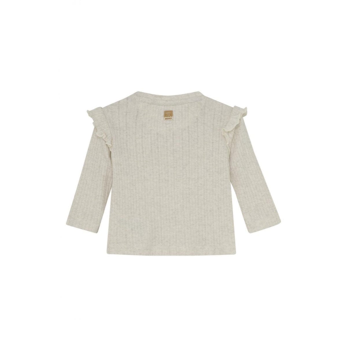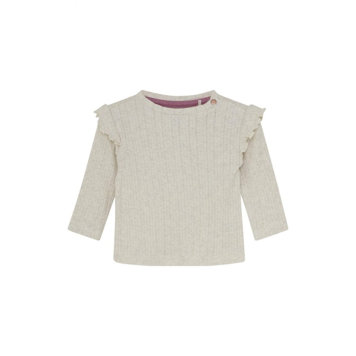 Girls' long sleeve Thornwood from Noppies Baby, made from GOTS-certified cotton (CU1392474), in a pointelle jersey quality. This is a delicate and decorative pattern in the fabric. The long sleeve features a round neckline with a snap button, decorative ruffles on the shoulders, and long sleeves. With GOTS cotton, you're making the best choice for yourself, your child, and the world. From the environmentally conscious way the cotton is produced to the ban on child labor, everything meets high standards. And it’s truly wonderful to wear!