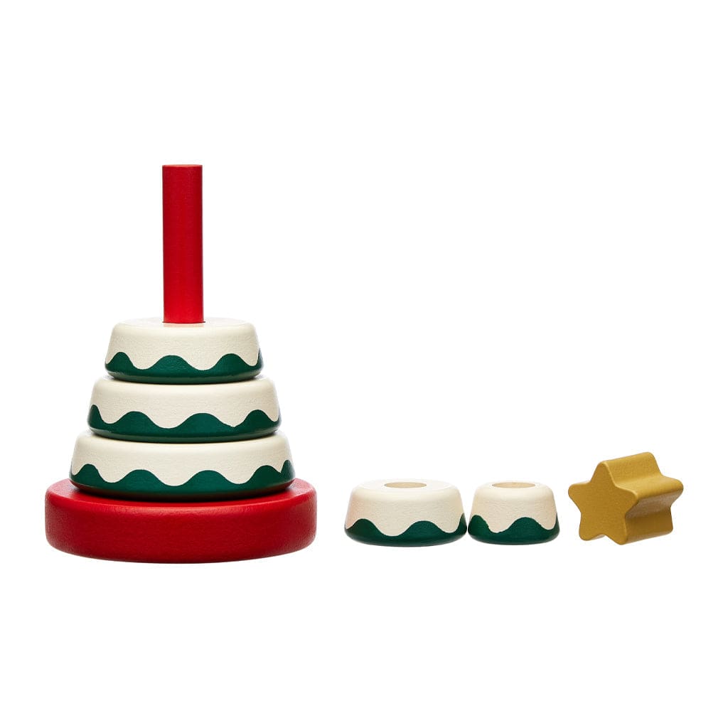It features a red base, 5 green and white stacking rings, and a golden star topper, providing hours of interactive fun and helping create special memories for both children and parents. After playtime, this festive toy can also be used as a charming holiday decoration in any nursery. It's the ideal gift for baby girls, baby boys, and even gender-neutral babies, making it a great choice for new parents or as part of a holiday or baby shower registry.