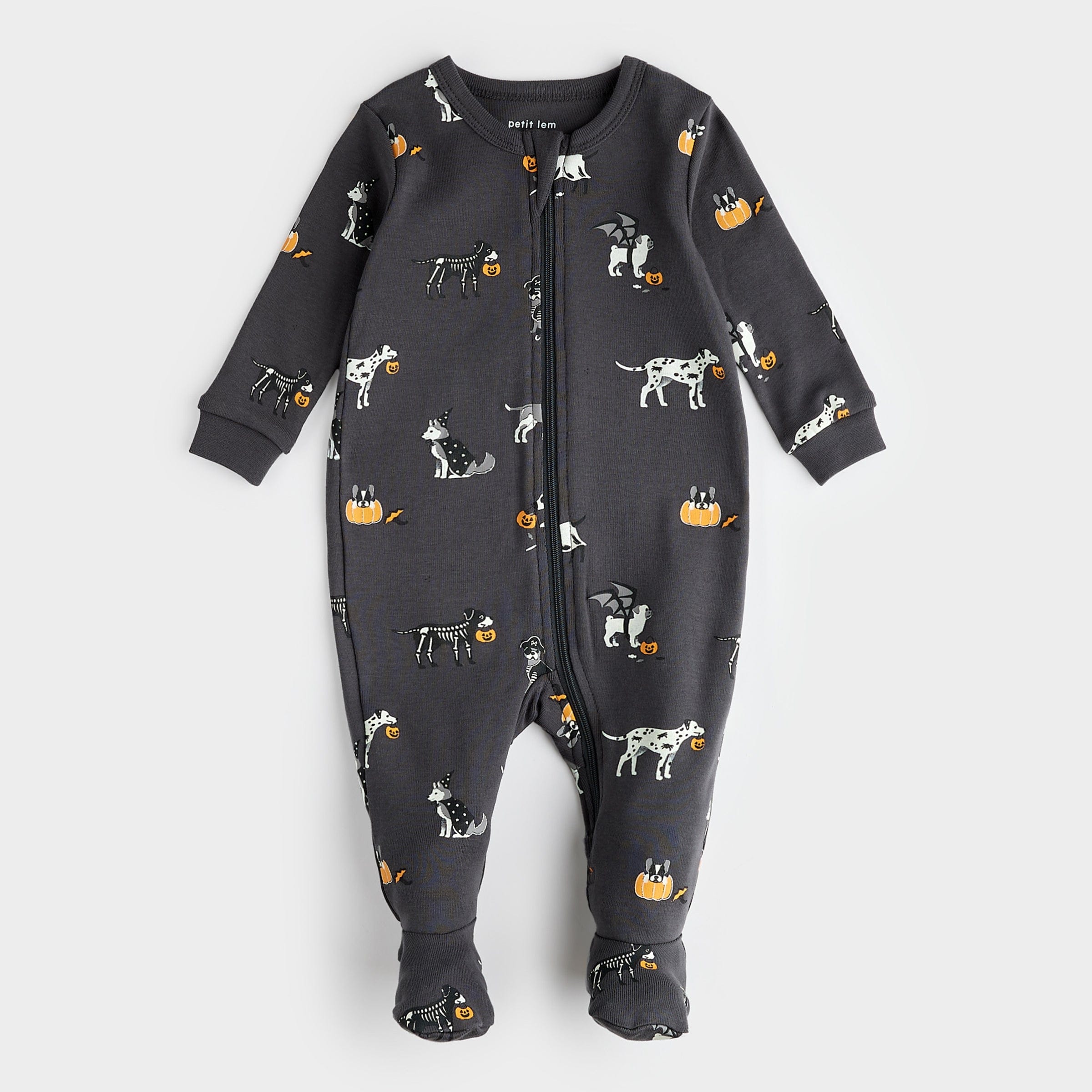 This must-have sleepsuit adds a touch of whimsy and enchantment to the spooky season, showcasing adorable furry friends in festive Howl-o-ween costumes. Crafted with both fun and functionality in mind, this playful one-piece includes cozy integrated feet and a convenient two-way zipper for hassle-free diaper changes.