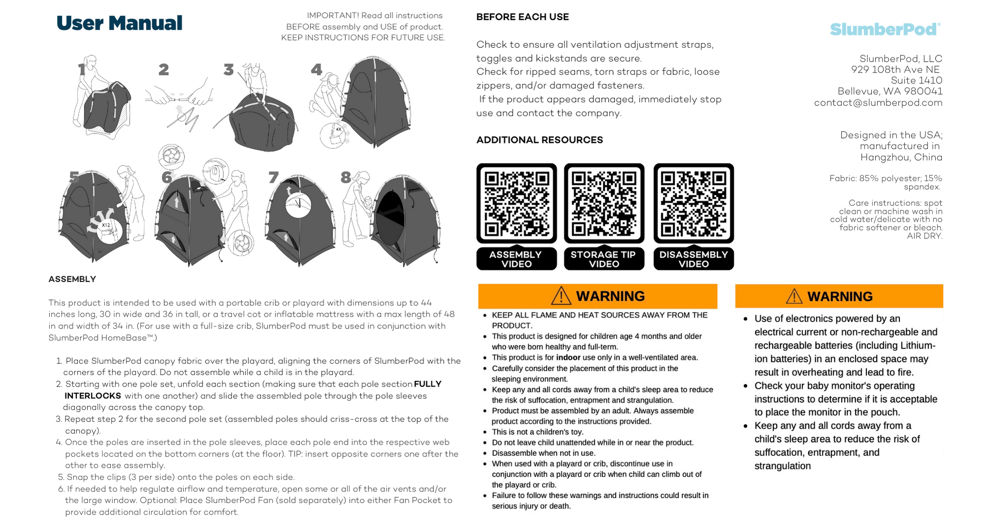 - Updated monitor pouch design to help keep the monitor in a perfect position to see your child while using SlumberPod.