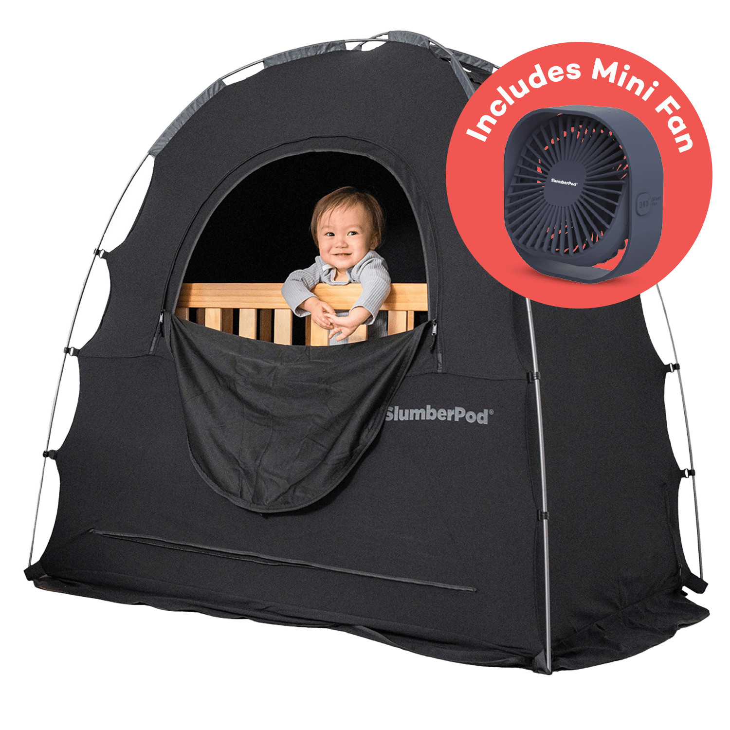 SlumberPod is a portable, privacy sleep space designed for babies to sleep comfortably in their familiar playard, mini crib, or toddler air mattress while traveling or at home. Created by a mother-daughter team, this US-patented product solves the common issue of sharing a room with a child or having a room without blackout curtains.