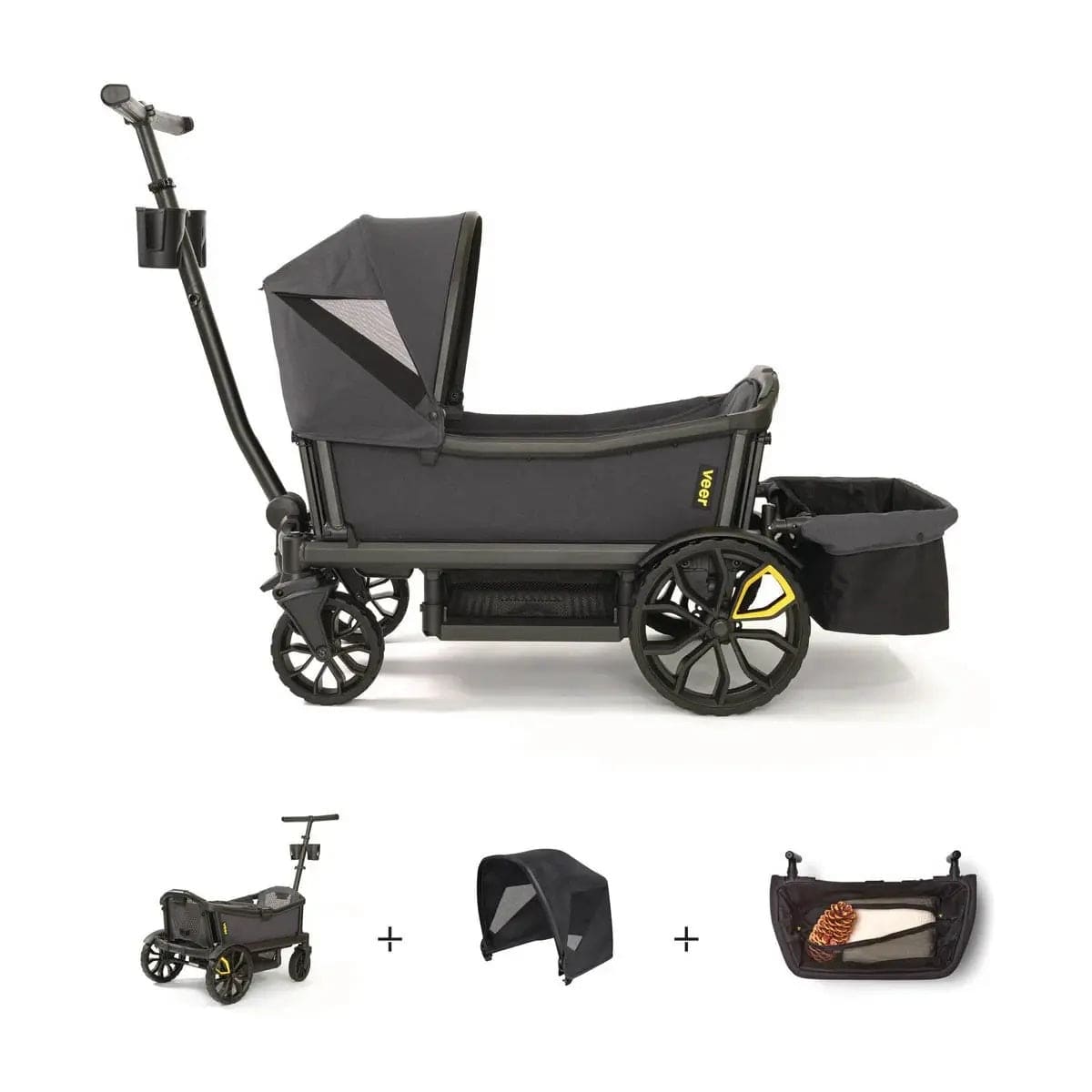 Upgrade your family outings with the Veer Cruiser + Accessory Bundle. Embark on your next adventure with the Veer Cruiser, a revolutionary all-terrain crossover that combines the convenience of a premium stroller with the excitement of a rugged wagon. This bundle includes essential accessories to enhance your experience, making family outings effortless and fun. Whether you're exploring nature trails, navigating city streets, or heading to the beach, this all-terrain adventure companion is designed to make every journey seamless and enjoyable!