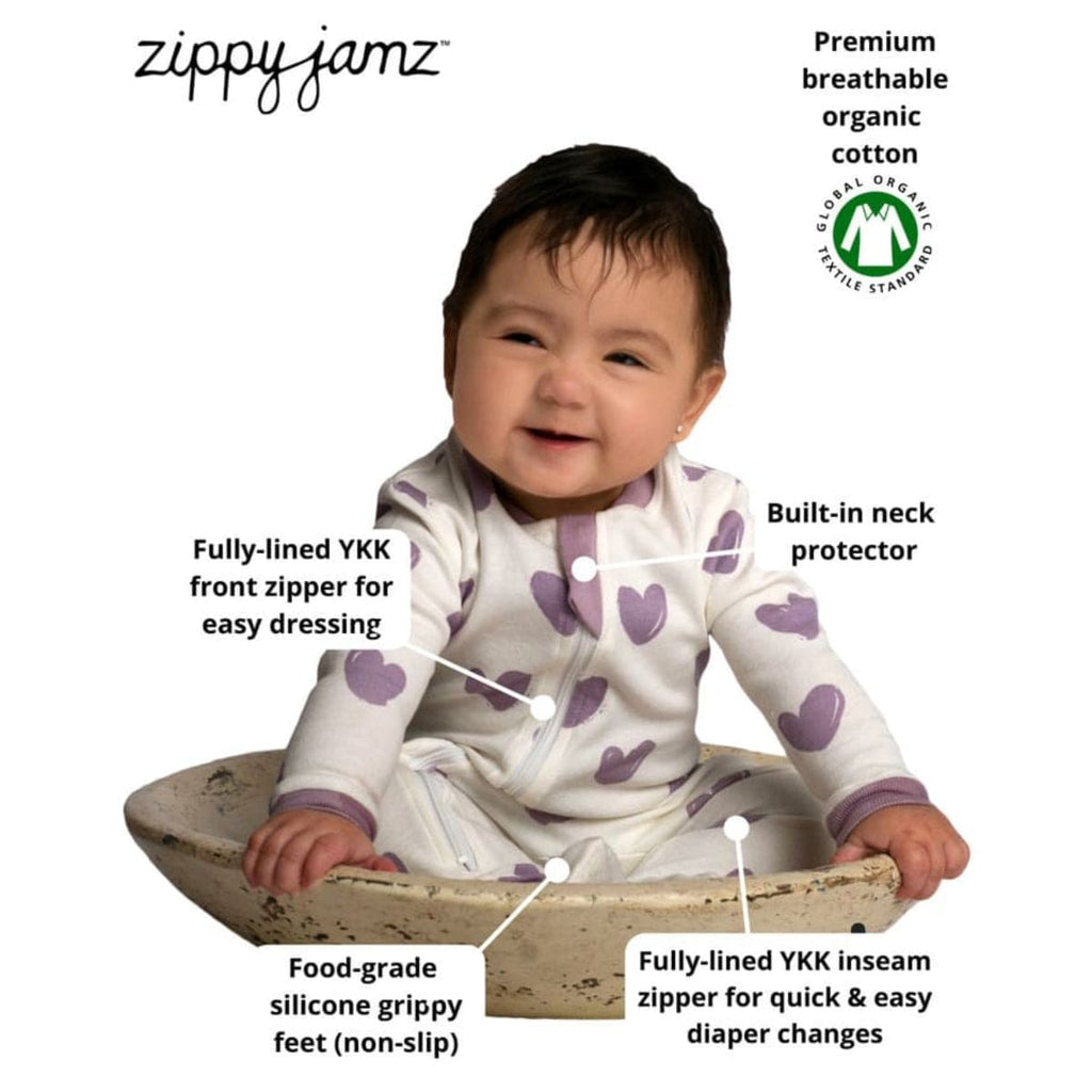 Featuring 2 separate zippers, this footed sleeper from Zippy Jamz will keep your baby warm and cozy throughout the night. The separate dual zippers will make dressing and diaper changing a breeze. Made from super soft cotton fabric.